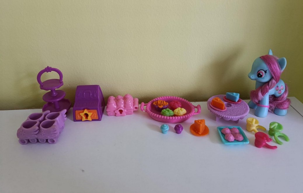 Dazzle Cake Pony Seti. Fotoğraftaki her şey dahildir.