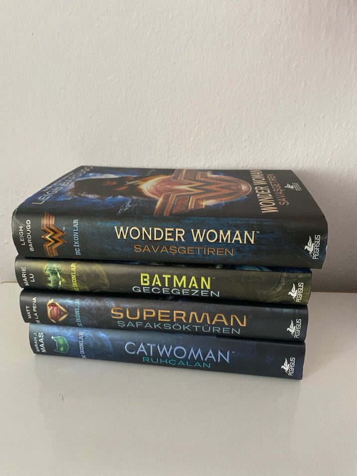 Wonder Woman, Batman, Superman ve Catwoman romanlarından oluşan dört kitaplık set. Her biri farklı bir macerayı anlatıyor.
