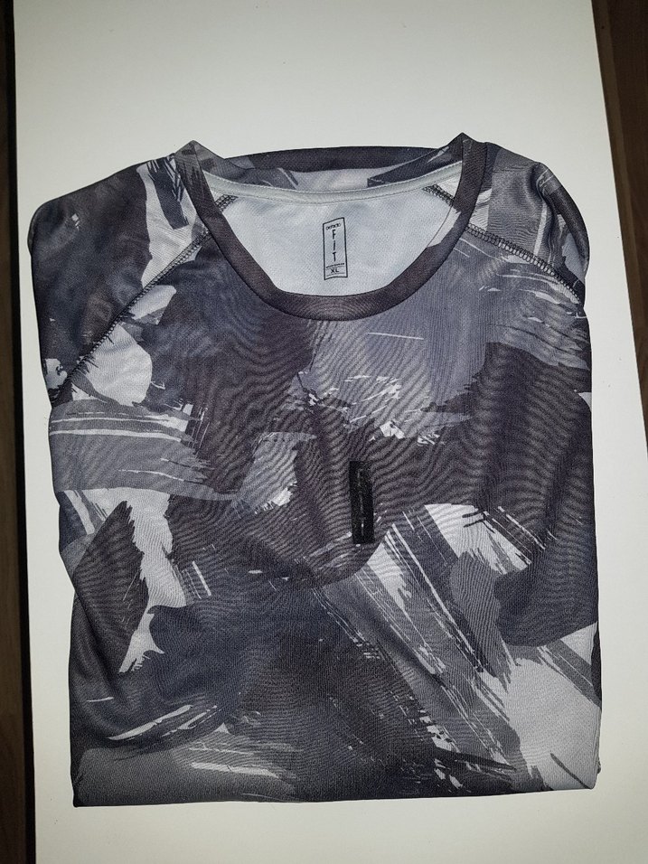 Gri baskılı, sentetik kumaştan, dar kesim yuvarlak yaka erkek spor tişörtü. Sokak stili ve spor için uygun. ♂️