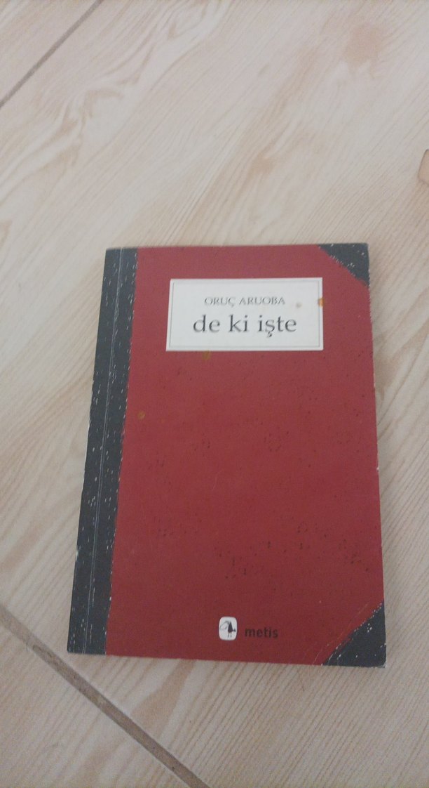 Oruç Aruoba'nın "De Ki İşte" adlı romanı, sade ve klasik kapak tasarımıyla derin temalar sunar.