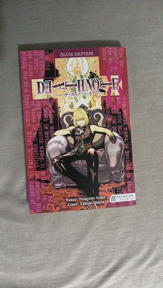 Tsugumi Ooba'nın yazdığı, Takesi Obata'nın çizdiği Death Note manga kitabı. Kapakta karakter taht şeklinde bir sandalyede oturuyor. Hasar bulunmamaktadır, yeni gibidir.