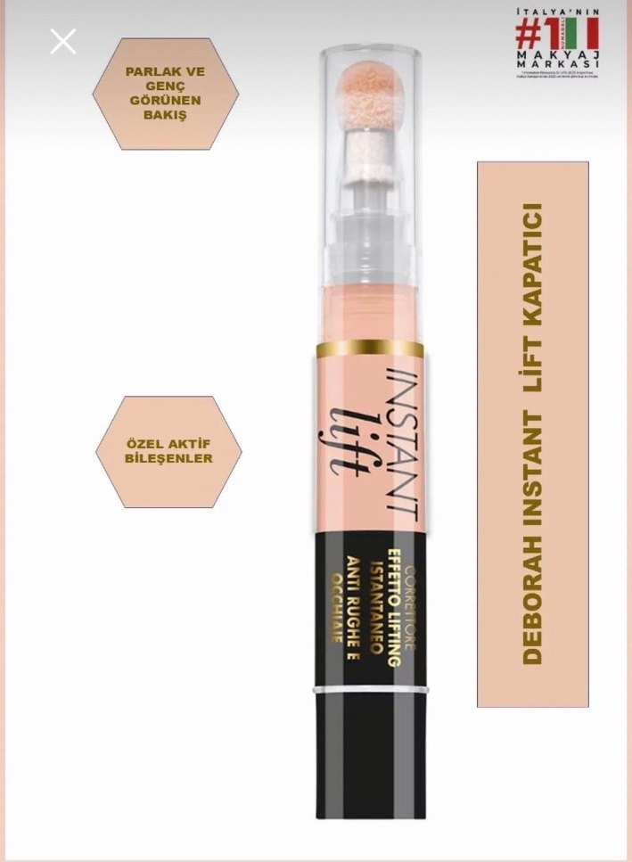 Deborah Instant Lift likit kapatıcı,parlak ve genç görünen bir bakış için özel aktif bileşenlerle kırışıklıklara karşı etkilidir. No: 01 Fair