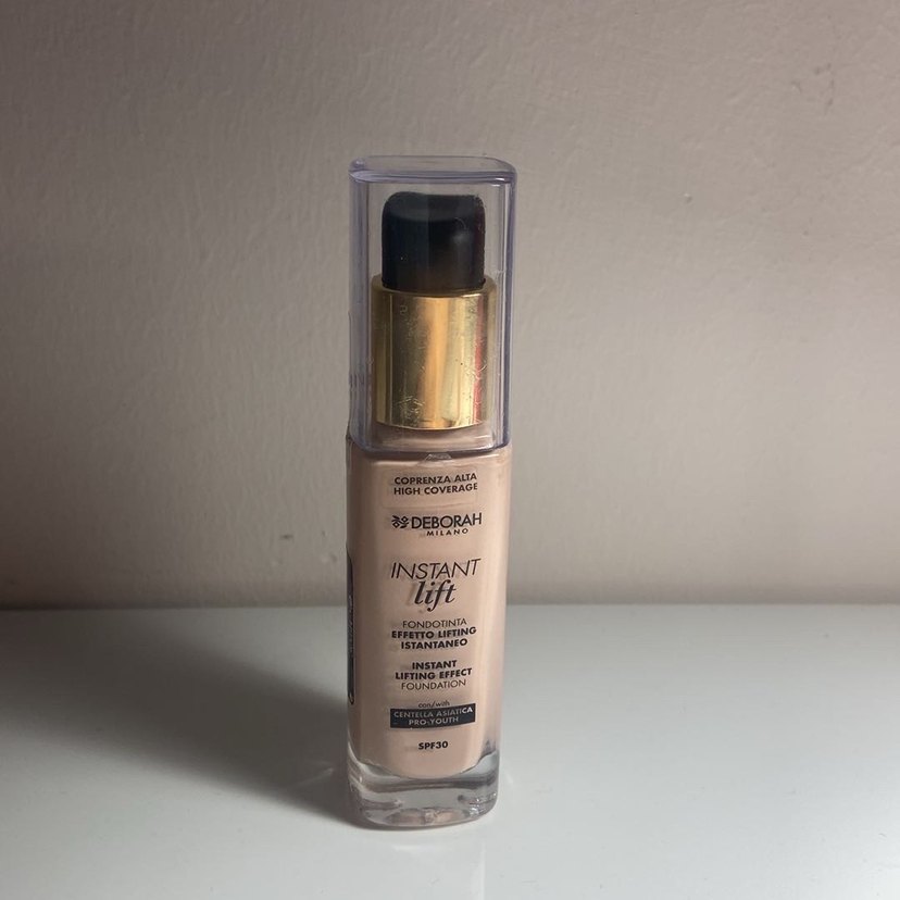Deborah Instant Lift fondöten, yüksek kapatıcılık ve lifting etkisi sunar. SPF 30 içerir.