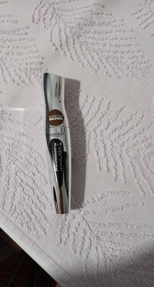 Deborah Milano markasına ait 5'li etkili kahverengi maskara, şık gümüş tüpte sunulmaktadır.