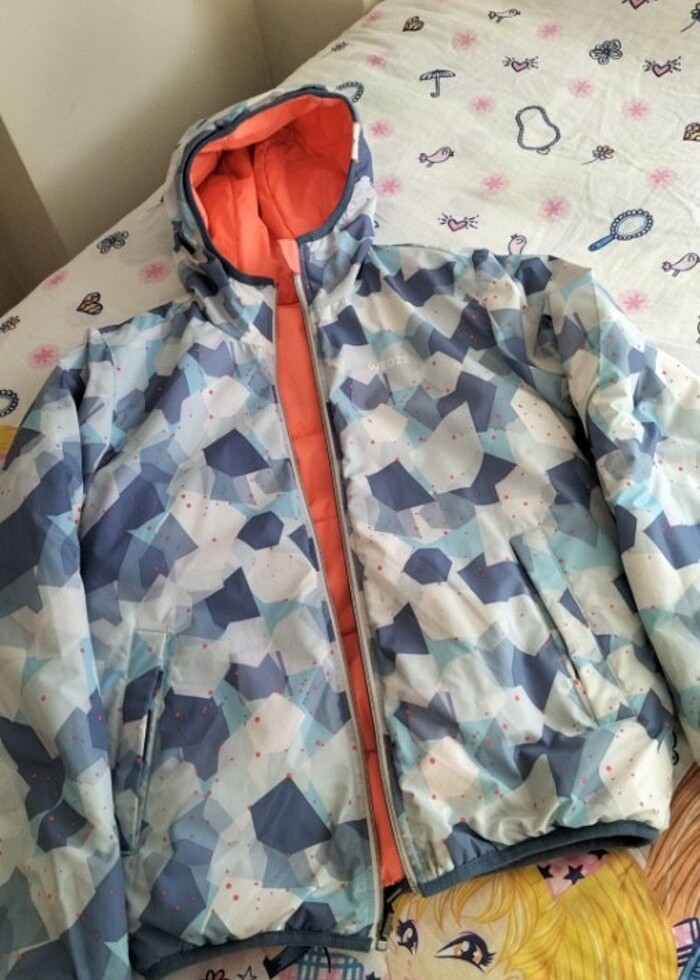 Decalthon 12 yaş çift taraflı mont montun hiç bir yerinde sıkıntı yoktur sadece turuncu kısmı kullanıma bağlı kirli kuru temizlemeye ihtiyacı var o kadar.