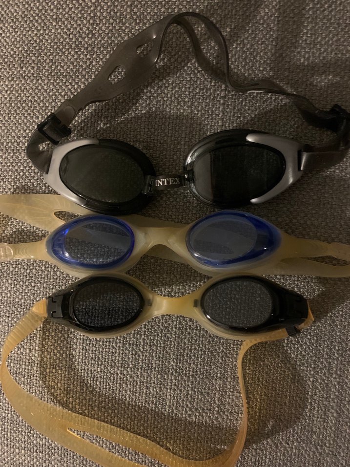 Decathlon Ayarlanabilir tokalı kayışlara sahip, çok renkli koyu tonlarda, yüzme gözlükleri. Plajda kullanım için minimalist ve karşı kültür tarzında. ️