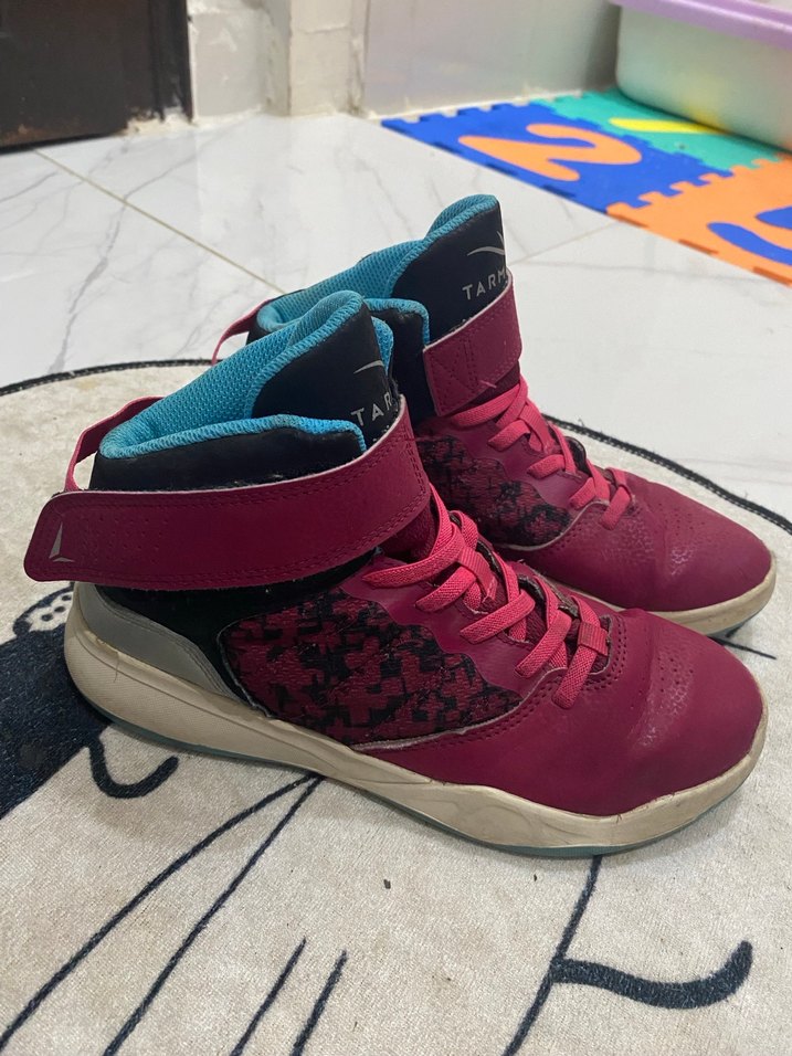 Decathlon basket ayakkabısı deforme olan yerin fotoğrafını attım ucunda küçücük bir aşınma var bir de yıkanması gerekiyor ben yıkamadım o sebepten fiyatı uygun koyuyorum içinde numara yazan etiket kaşındırdığı için kesilmiştir