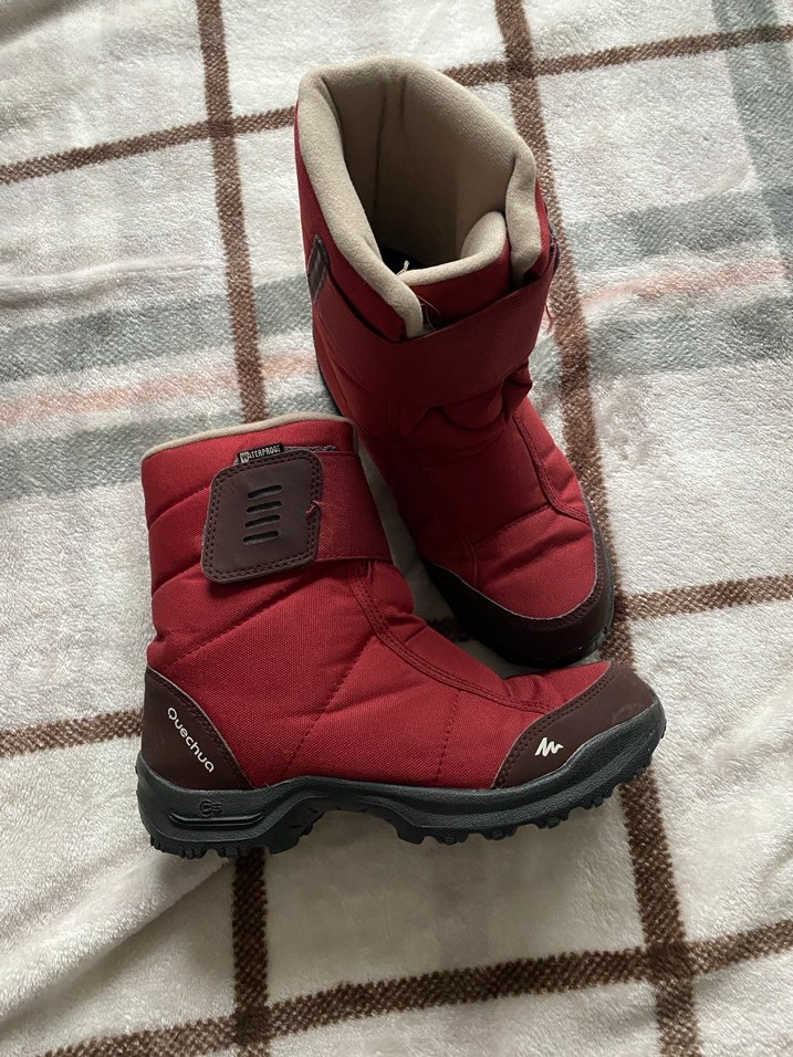 Decathlon bordo bot 38 numara ama 37 giyen bir de giyebilir kar botu bir kere kar tatilinde giydim çok rahat su geçirmez