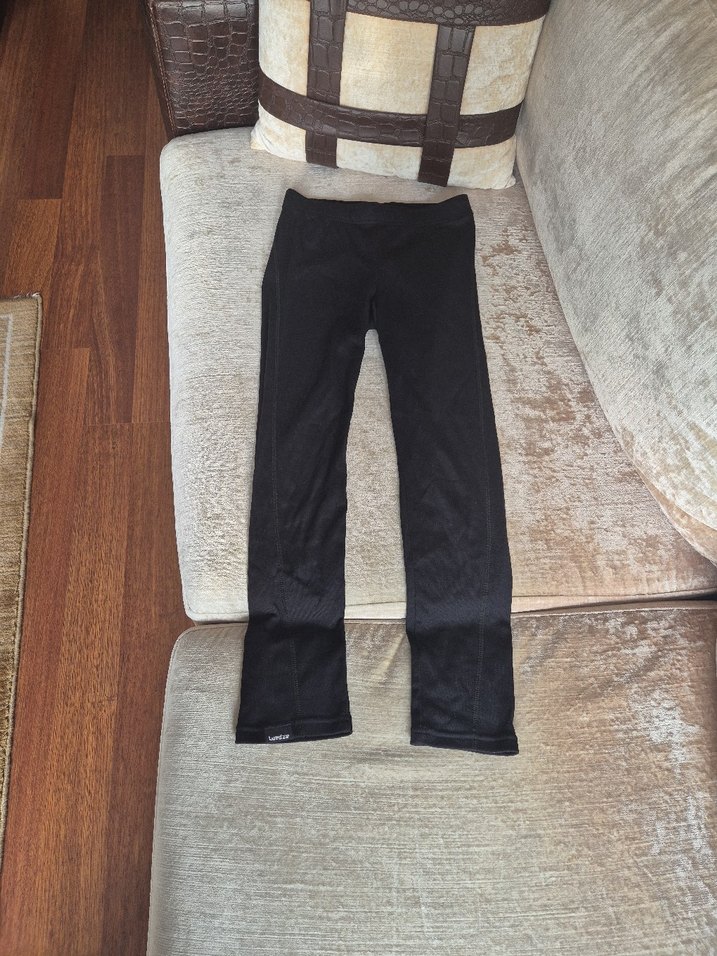 Siyah, yumuşak ve sıcak kumaştan yapılmış, esnek dokuma ve düz dikişlere sahip termal alt içlik. Unisex Çocuk- 12 yaş için. Boyu 84 cm., beli 31 cm.