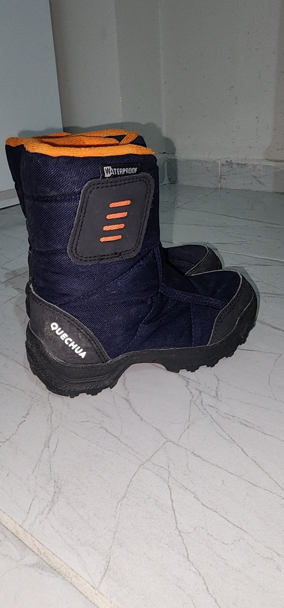Koyu mavi renkli, su geçirmez kauçuk malzemeden yapılmış, biker tarzı erkek çocuk botları Velcro ile kapanır. Trend belirleyici ve modern görünüm sağlar.