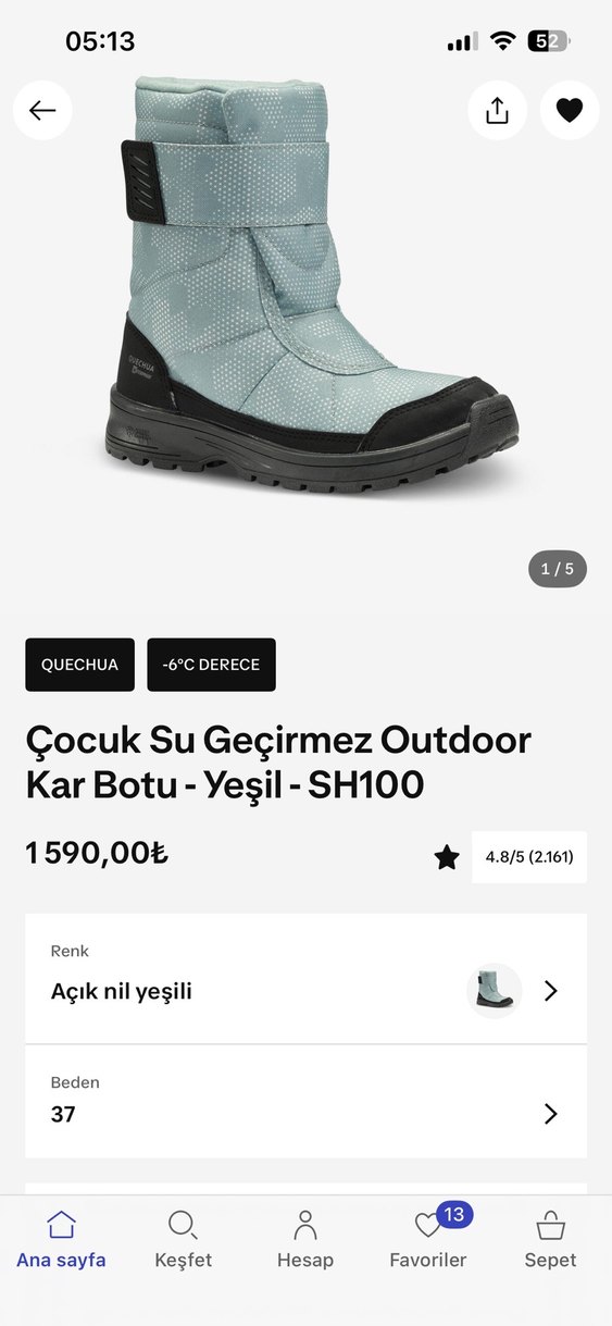 Mint yeşili renkte, kauçuk malzemeden yapılmış, Velcro kapamalı erkek outdoor ayakkabısı. Street style ve günlük kullanım için uygundur. Asla su geçirmez. Tam sezon biterken aşırı yağmurlar eski botun su çekmesine sebep olunca bunu aldım. Yeni sezonda ayağını sıkıyor. 2 kez giyildi sadece, aynısının büyüğünü almak için satıyorum sıfırdan farksız. Unisex’dir kız ve erkek için uygundur.