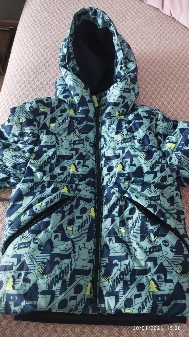 Erkek çocuklar için tasarlanmış, lacivert baskılı, fermuarlı ve notlu yaka detaylı, suni kumaştan üretilmiş şık mont. eksi havalarda bile sicacik tutan bir mont bir tek defosu var fotografta gosterdim fermuar kapaninca gorunmuyor bile alanin pisman olmucagi cok temiz bir mont#mont#decathlon#zara