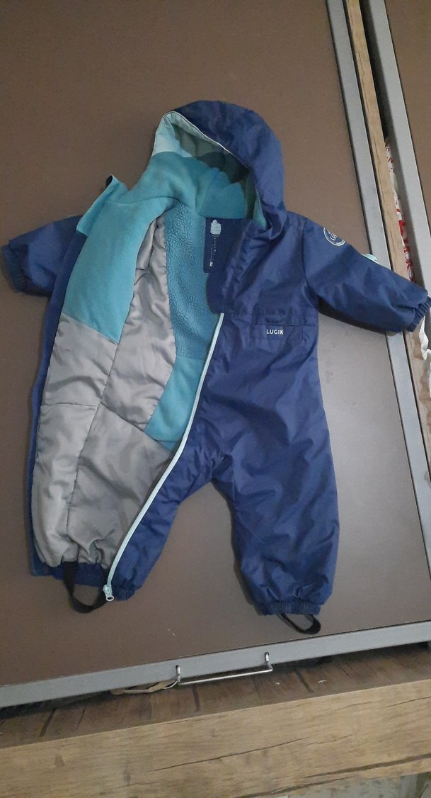 Bebek tulumu, fermuarlı ve yumuşak, sıcak fleece astarlı. Mavi ve gri renkte, desensiz, günlük kullanım için uygundur. ❄️ bir kere giyildi 76 81 cm 18 ay için uygun defaosuz