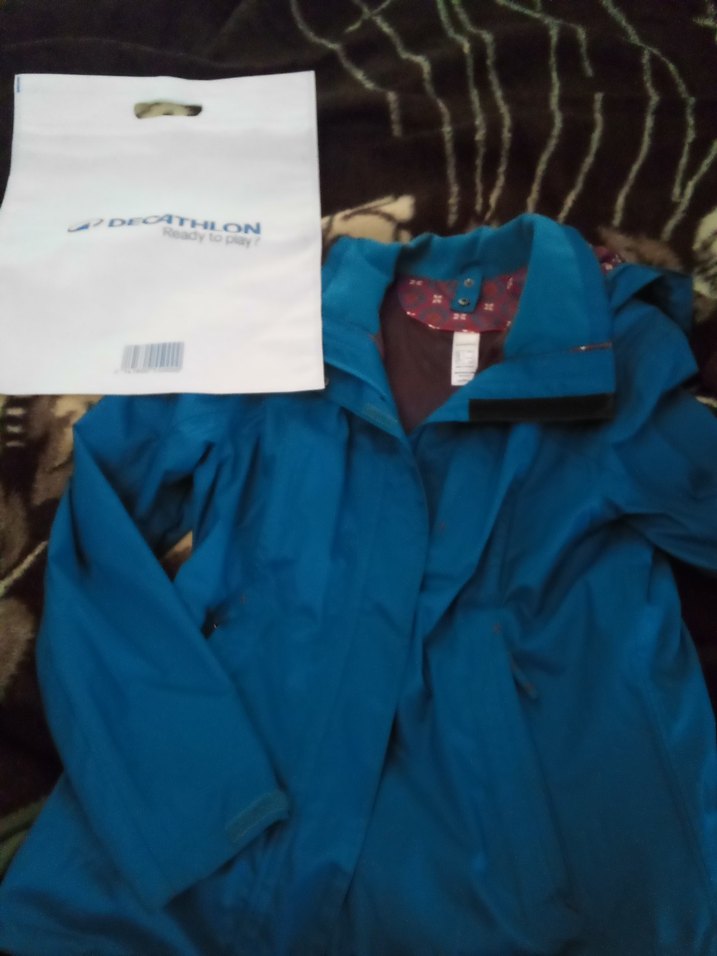 sıfır ancak etiketi yok Decathlonun markasi süper ötesi bir mont. istersen şapka içine gizleniyor