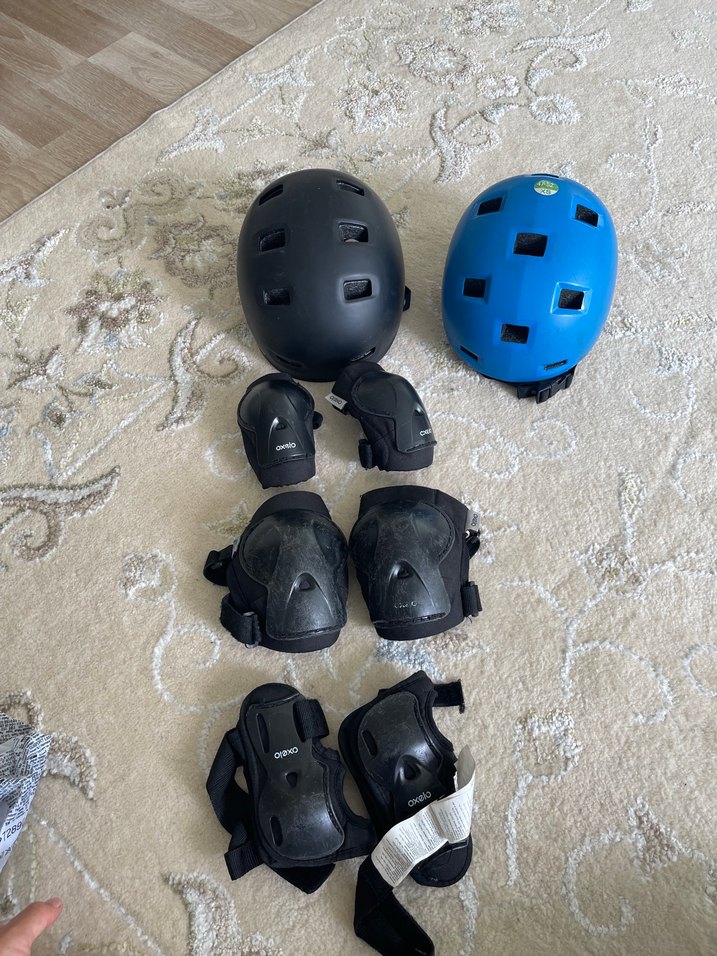 Mavi ve siyah renklerde, havalandırma delikli kasklar ile cırt cırtlı siyah dizlik ve dirseklikler içeren dayanıklı plastikler mevcut. Dizlik seti; 750 Siyah kask:750 Mavi kask:400