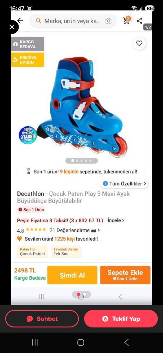 Birleştir KazanBu profilden birden fazla ürün seç, daha az öde!