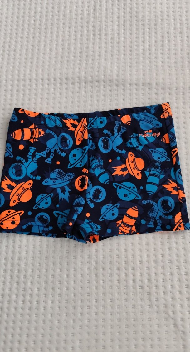 Mavi ve turuncu renklerde uzay temalı baskılı, rahat erkek çocuk mayo şortu. ♂️ yepyeni çok şirin