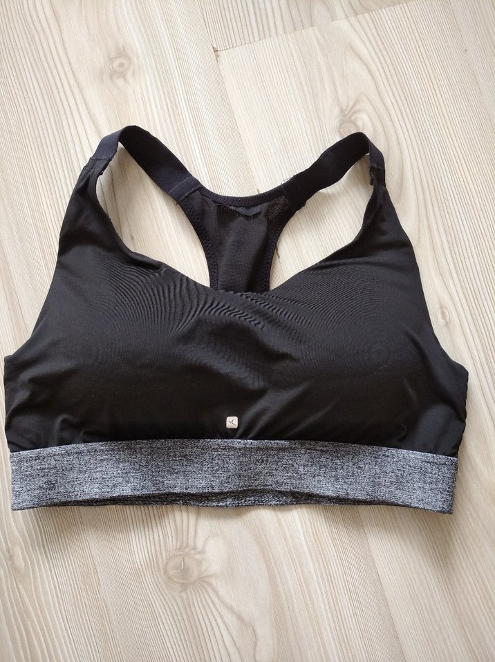 sınırlı giyildi,çok iyi durumda Siyah renkte, gri elastik bantlı atletik sporcu sütyeni. Streetwear ve athleisure tarzına uygun, rahat ve destekleyici.s,m,l uyumludur