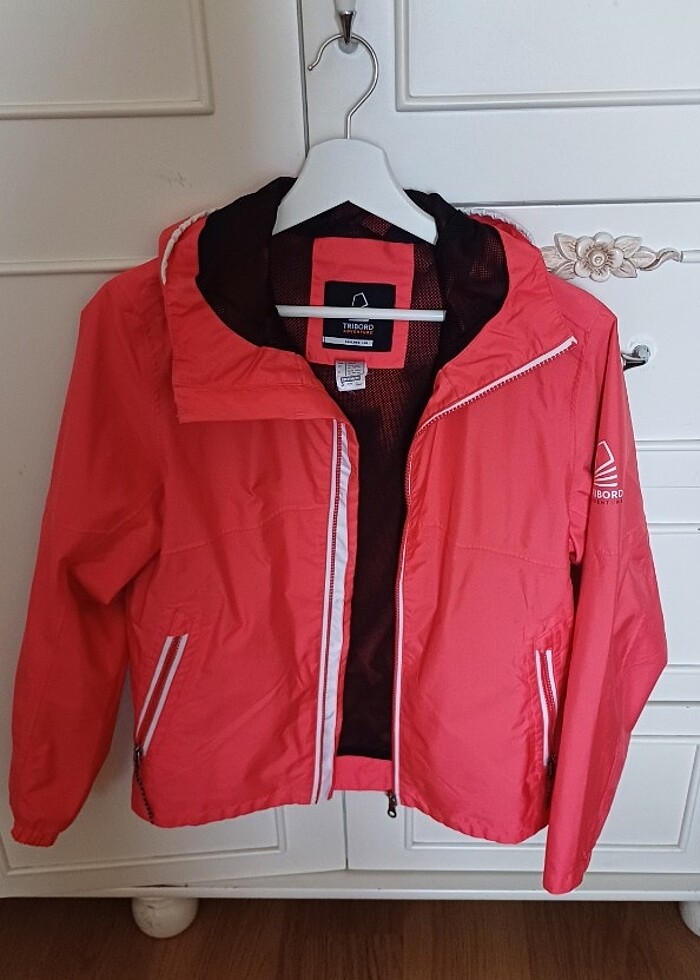 Su geçirmez yağmurluk rüzgarlık. Çok az giyildi hiç bir kusuru yok. Rengi nar çiçeği gibi kırmızı değil.