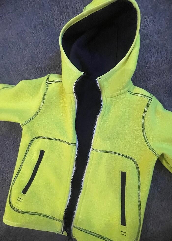 Unisex kullanım bir tarafı fosforlu sarı bir tarafı lacivert çift taraf kullanımlı kusursuz 2-3 yaş rahatça kullanılabilir