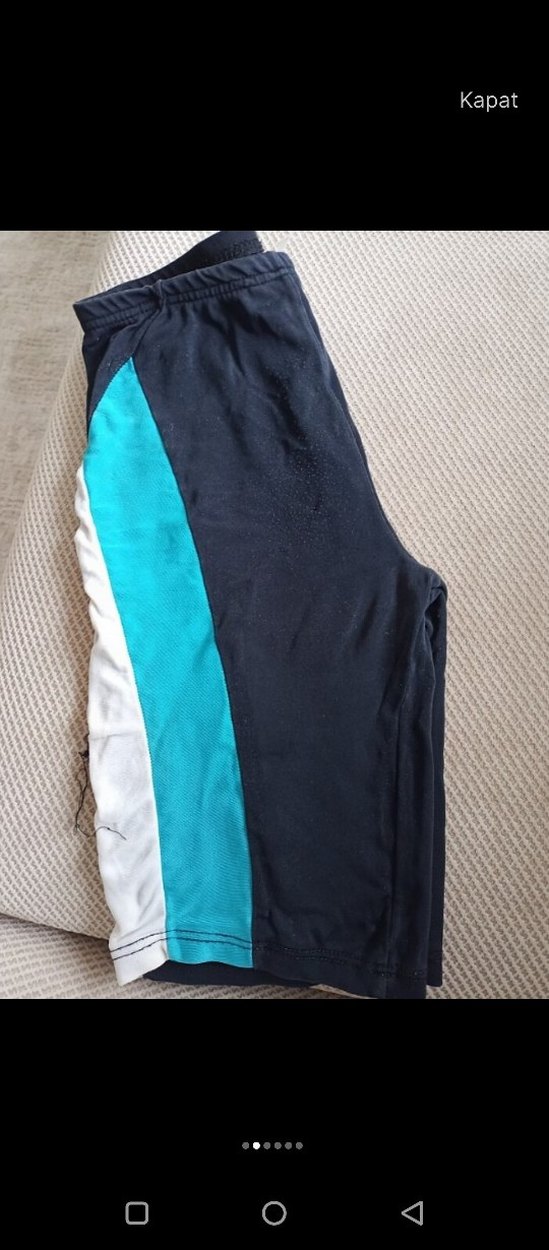 Lacivert renkte, yanları turkuaz ve beyaz şeritli, erkek yüzme şortu. Rahat elastik bel bandı bulunur. yedek şort olarak alabilirsiniz
