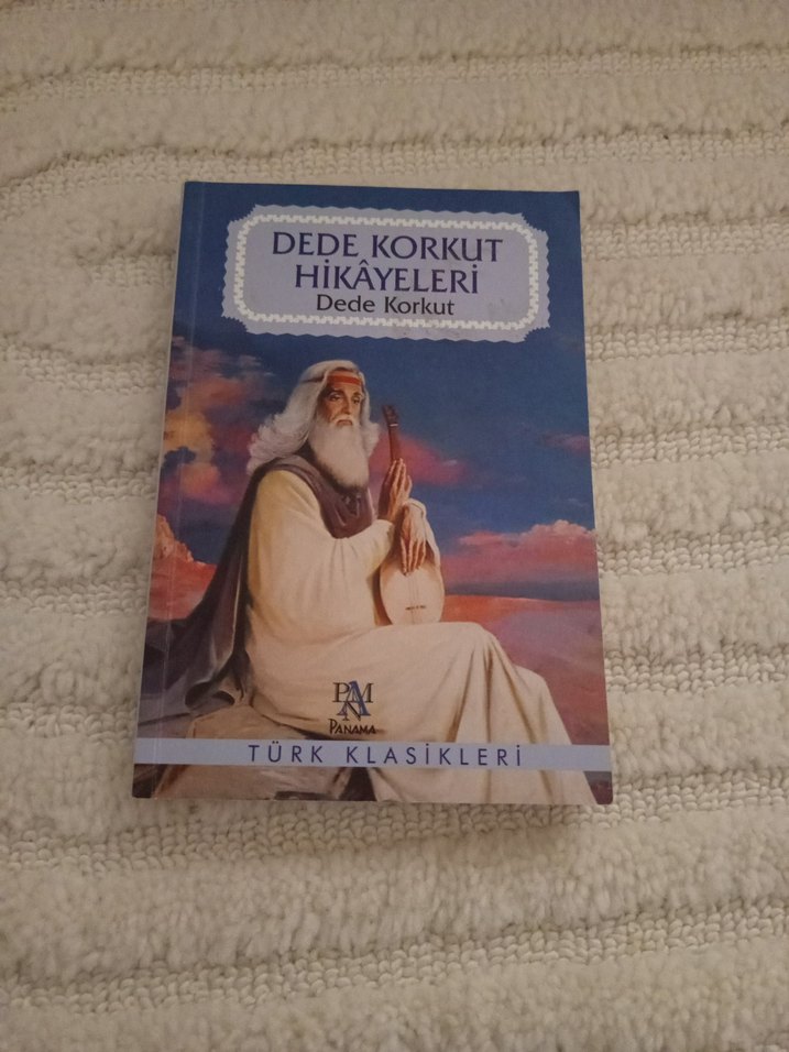 Dede Korkut'un klasik hikayelerini içeren, geleneksel kapak tasarımlı Türk Klasikleri kitabı.