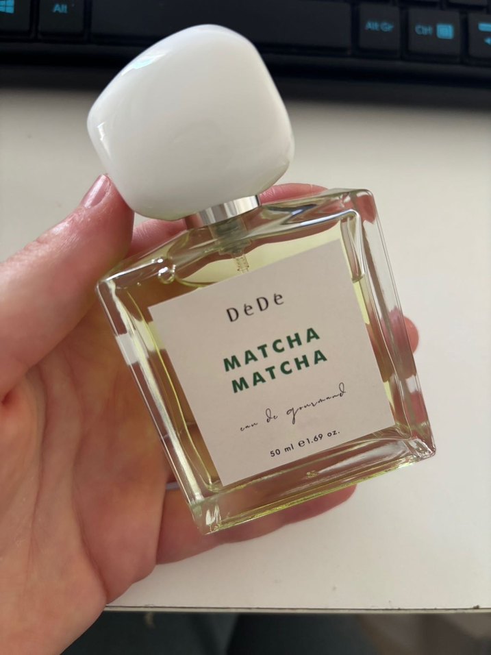 DeDe Matcha, beyaz kapaklı 50 ml şişede sunulan taze ve özgün kokulu kadın parfümüdür.