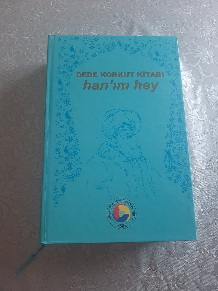 "Dedekorkut Kitabı - han'ım hey" isimli kitap, geleneksel hikayeleri detaylı çizimlerle sunan turkuaz kapaklı bir eserdir. kuşe kaüıda basılı yaldızlı simli çizimli esersıfırdır