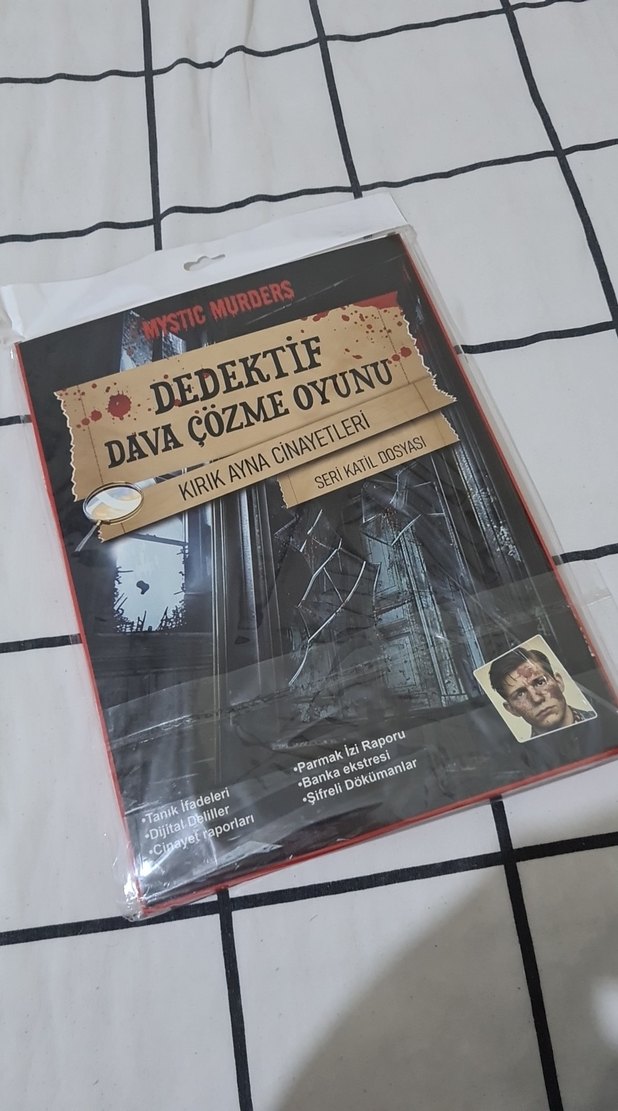 KIRIK AYNA CİNAYETLERİ KONULU OYUN -Sadece 1 kere arkadaşımla oynadık,sayfalar eksiksizdir ve üzerinde herhangi bir karalama yoktur. -Dergi şeklindeyken okunması zor olduğu için sayfalara ayırdık. -2li alımda indirim yapabilirim.Fiyatta anlaşabiliriz.