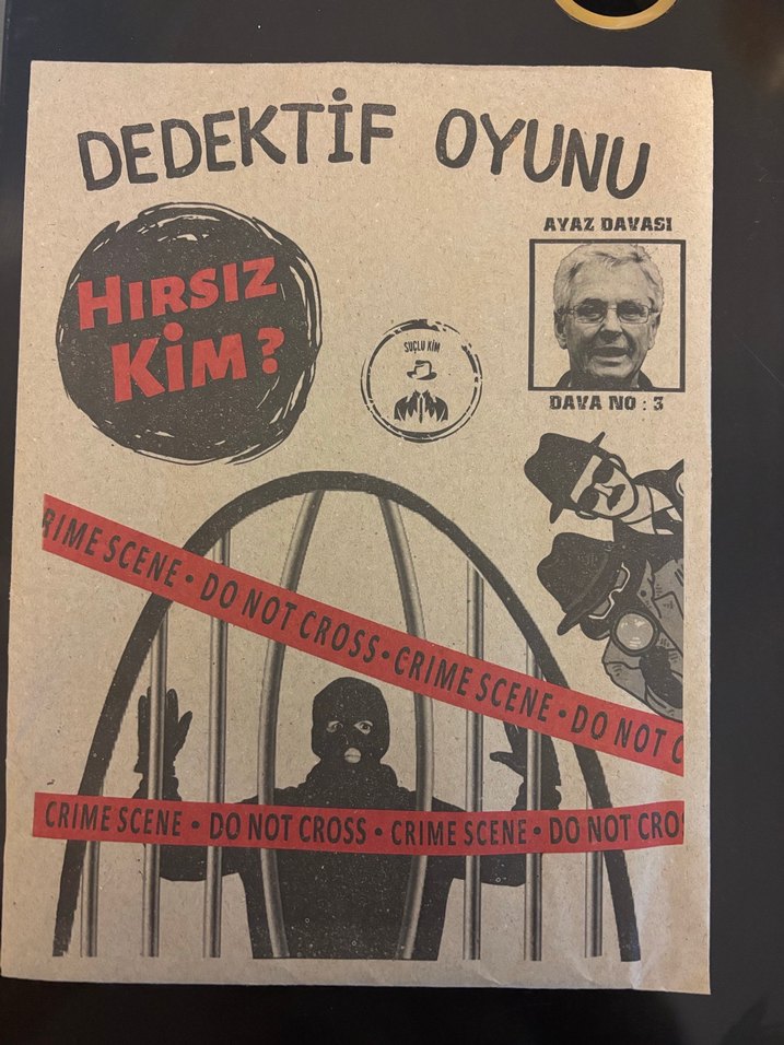 Ayaz Davası'nın işlendiği, "Hırsız Kim?" sorusunu içeren dedektif oyunu kitabı. Suç mahalli temalı.