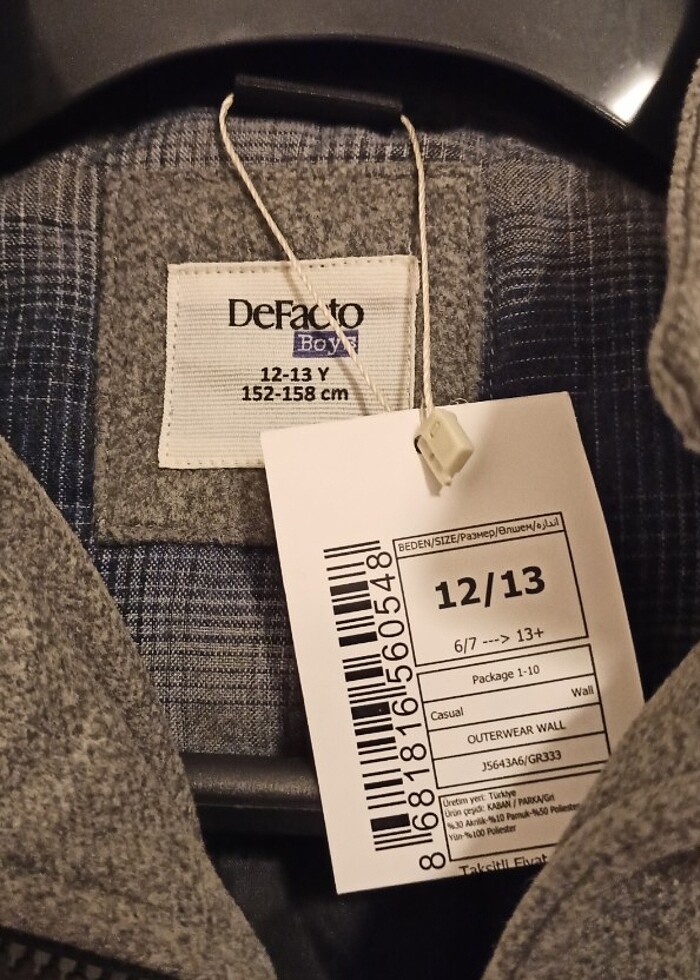 DeFacto 12-13 yaş kapşonlu fermuarlı kaban parka. yeni etiketi üzerinde.