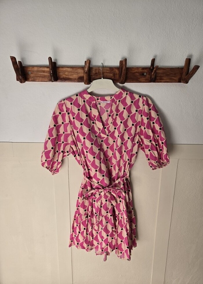 Kol altı lastikli belden kemerli hakim yaka diz üstü elbise