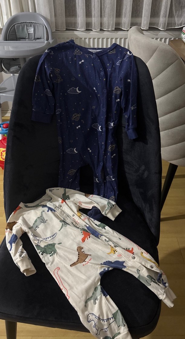 DeFacto markasının ikili tulumu biri ayaklı biri ayaksız Dinazorlu olan 3/6 lacivert olan 6/9