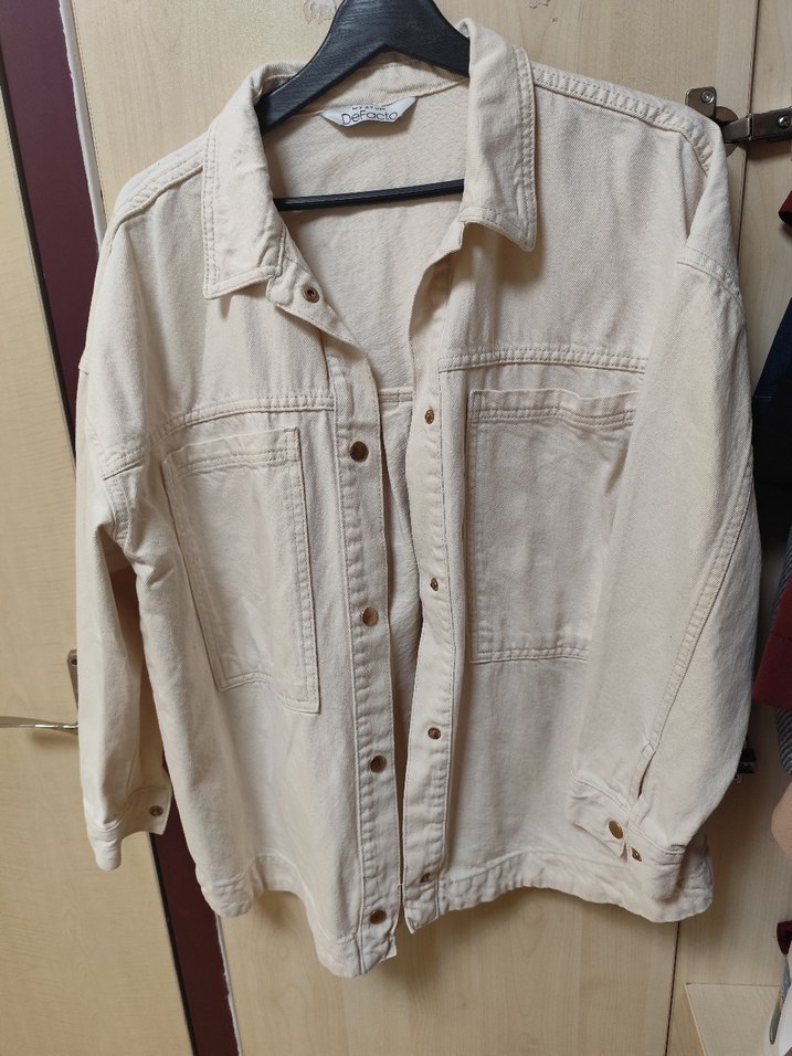 Düğmeli ön kısmı ve uzun kollu, bej renkli, bol kesim gömlek. Notch yaka detayıyla günlük sokak stiline uygun.