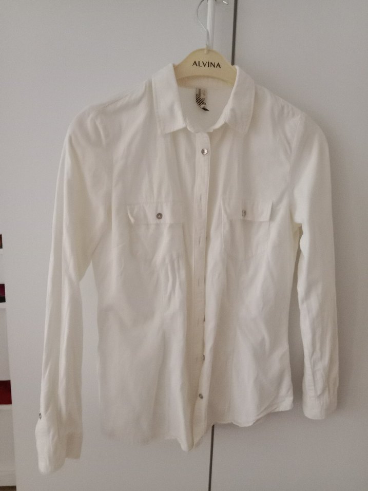 DeFacto marka, uzun kollu, düğmeli, yakalı, normal boy beyaz ince kadife gömlek. Rahat kesimli, günlük kullanıma uygun şık tasarım.