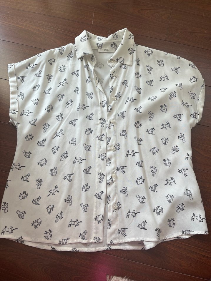 Defacto Beyaz Kedi Baskılı Kısa Kollu Kadın Gömlek