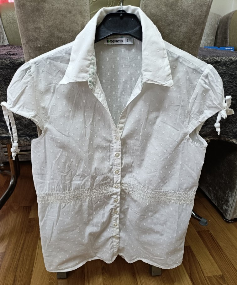 Zarif dokusu ve minimal puantiye deseniyle tam yazlık, ferah bir parça ✨ Marka: DeFacto Beden: S Renk: Beyaz Kumaş: %100 Pamuk (nefes alır, terletmez) Boy: 62 cm İki kol altı arası: 44 cm Model: Kısa kol, düğmeli, klasik yaka Detay: İnce puantiye dokulu kumaş, kol bağlama detayı Günlük kombinlerde, ofis şıklığında ya da yaz akşamlarında rahatlıkla kullanılabilir. Jean, şort, etek ya da kumaş pantolonla çok şık durur. Detaylar fotoğraflarda mevcut. Temiz ve kullanıma hazır. Fiyat: 189 TL (makul tekliflere açığım ) Özenli paketleme & hızlı kargo #defacto #kadıngömlek #beyazgömlek #pamuklu #sbeden #yazlık #minimalstil #temizürün #dolap