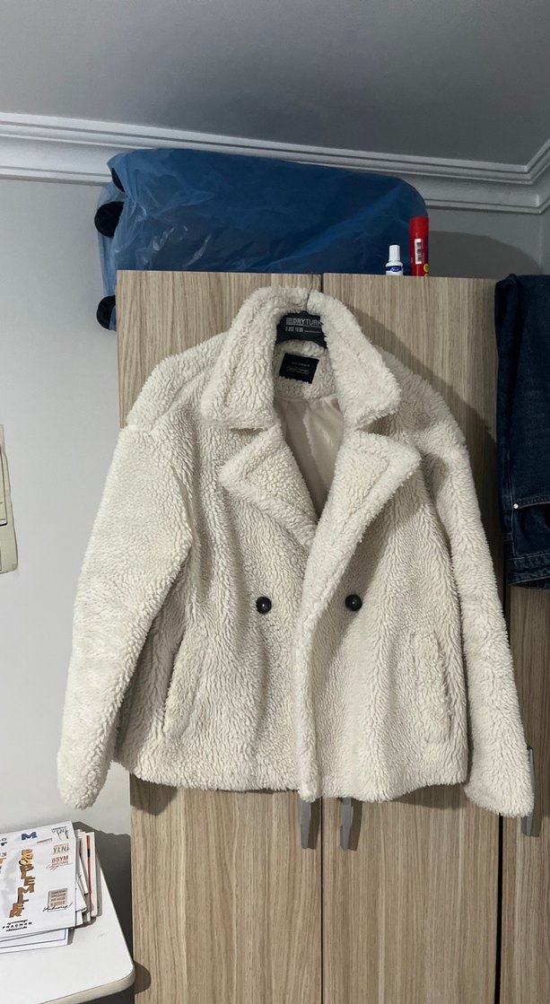Beyaz peluş kaban, kürk detaylı ve kesik yaka ile rahat kesime sahip. Midi boyda, günlük kullanıma uygun şık ve rahat bir model. ❄️ xs 34 bedendir defosu yoktur