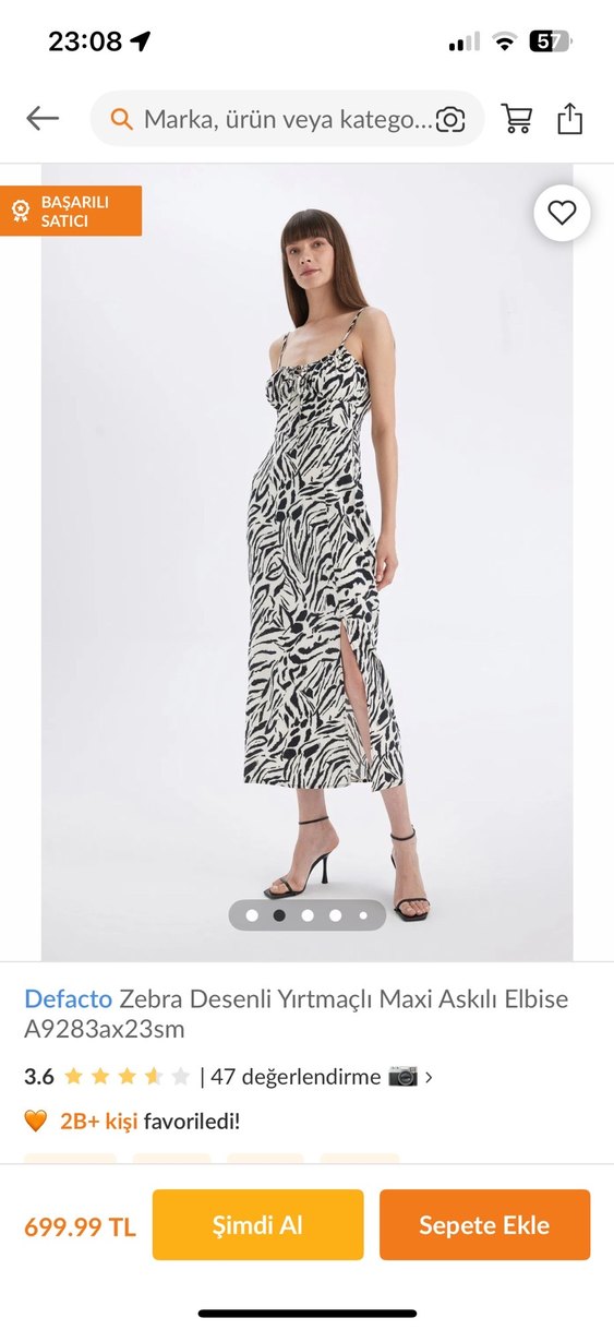 Beyaz zebra desenli, askılı ve yırtmaçlı bu dar kesim maxi elbise, yumuşak sentetik kumaştan üretilmiştir. Romantik akşamlar için trend sokak stili.