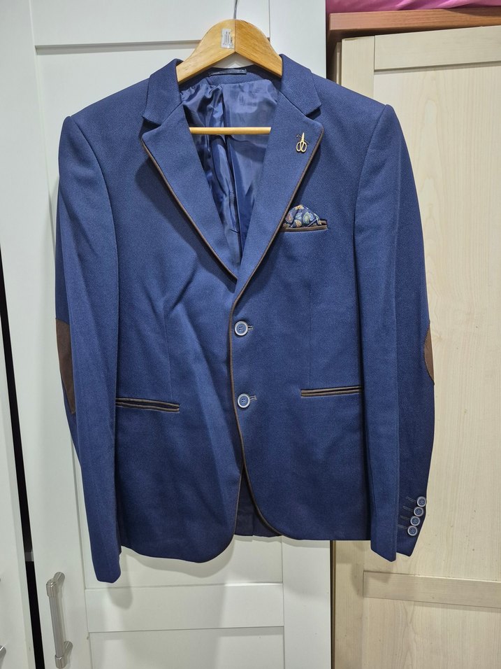 sadece bir kez doğum gününde kullanıldı 48 beden slimfit ceket koltukaltı 48cm omuz 44cm boy 71 cm