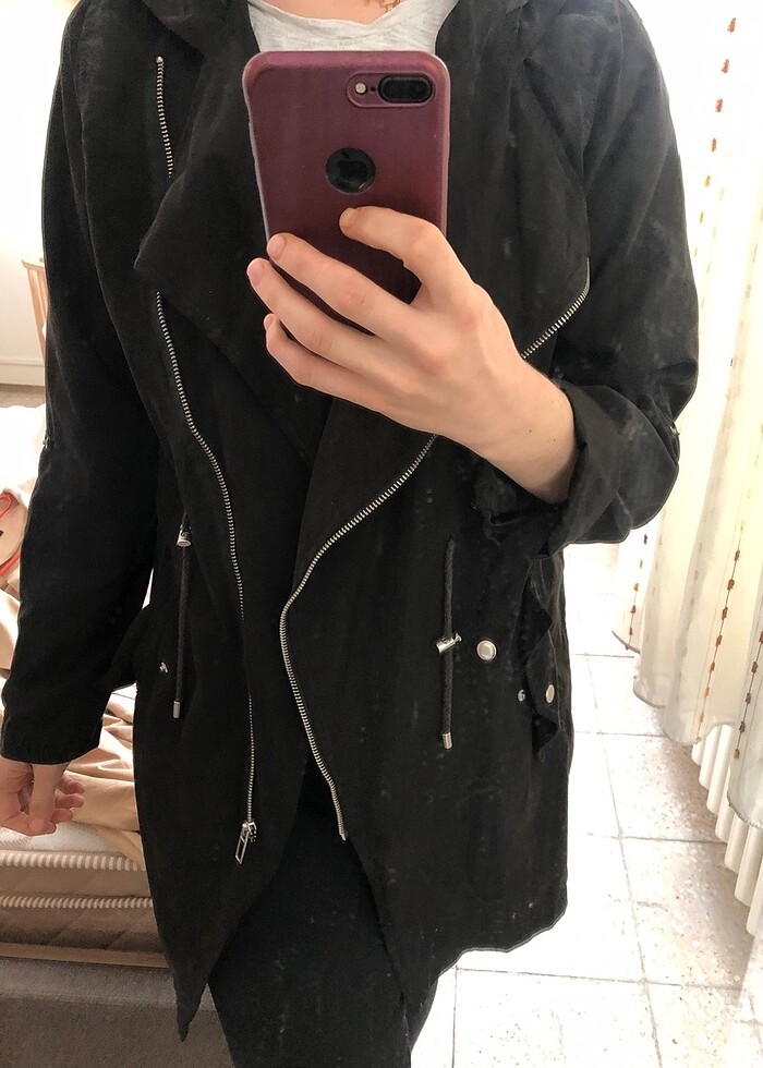L beden siyah ve şapkalı, dokusu kadifemsi gibi yumuşak mevsimlik