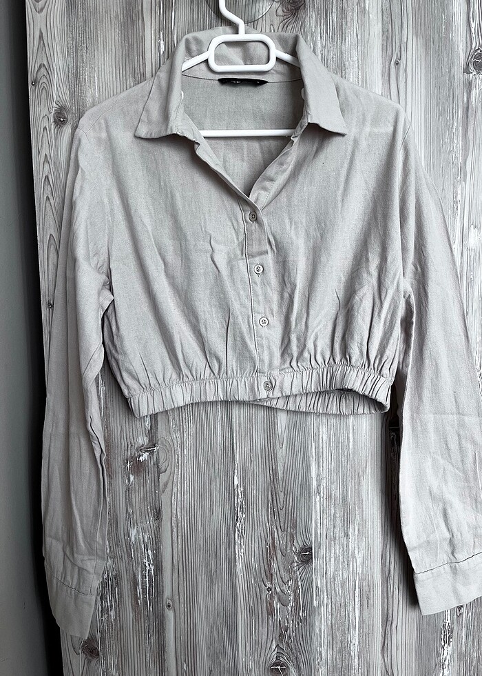 Defacto uzun kollu bej crop gömlek