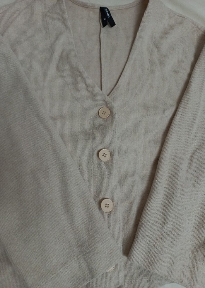 Defacto marka crop hırkadır. Bej renginde ve orta kalınlıktadır. Herhangi bir defosu yoktur sadece bir kez giyildi. Alıcısına şimdiden uğur getirsin