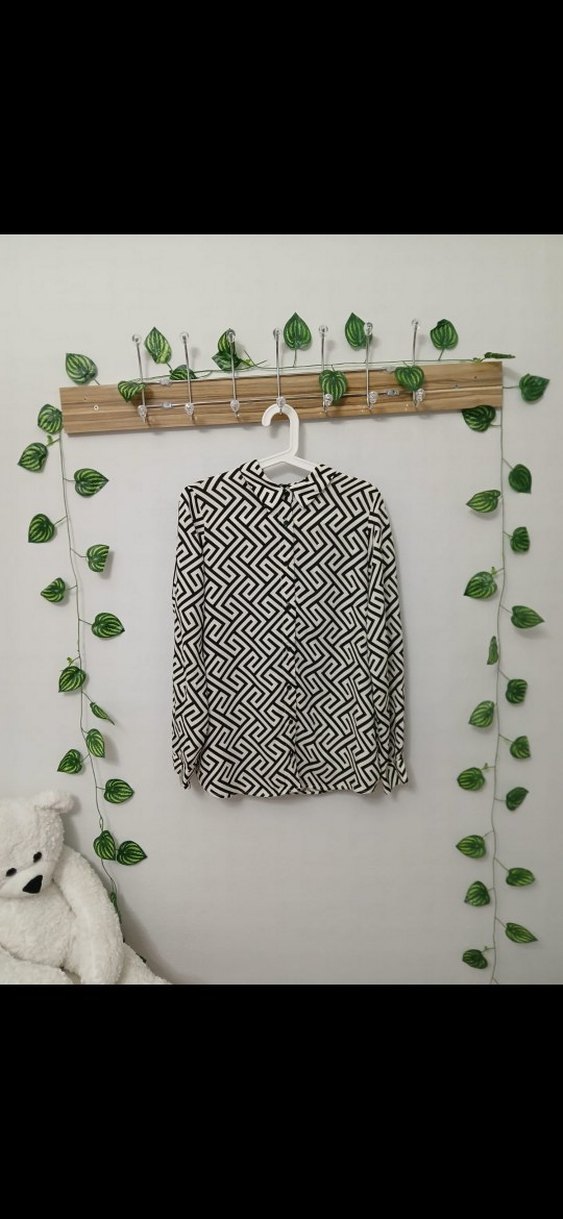 defacto Kadnlar için uzun kollu, 38 40 42 beden uyumlu yüksek yakalı, pileli ve siyah beyaz geometrik desenli gömlek. Regular fit ve midi boyda, yumuşak dokulu kumaştan yapılmıştır. hiçbir sorunu yoktur. uzunluk 71 cm genişlik 55 cm