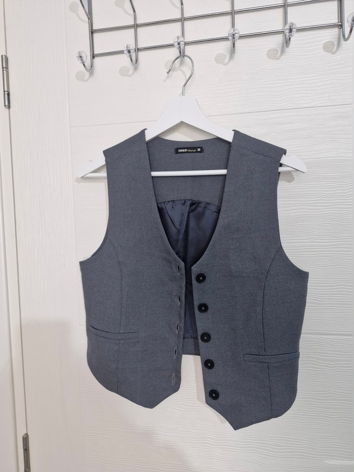 Düğmeli ve V yaka detaylı gri kadın yelek, midi boy ve regular fit. Ofis ve günlük kullanıma uygun, pamuk kumaştan üretilmiştir. 36 bedendir. Yenidir. Etiketi yoktur.