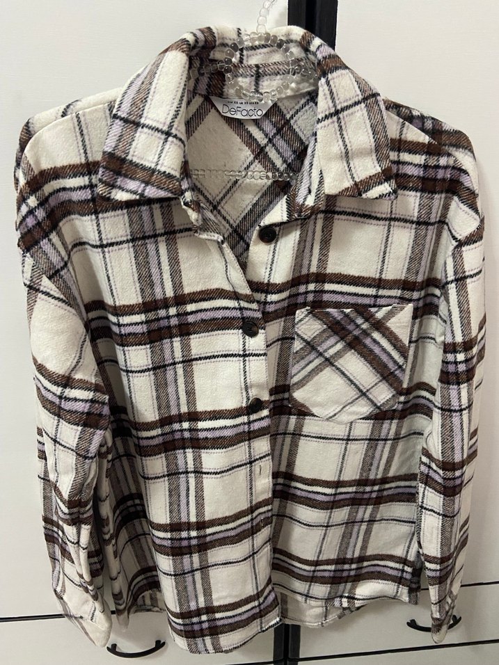 Defacto Düğmeli Uzun Kollu Ekose Kadın Gömlek