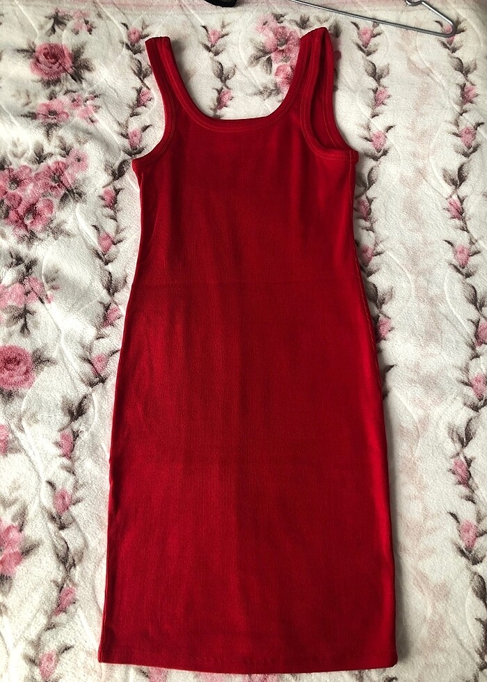 1 kere kullanıldı. Dizin biraz üstünde bitiyor. Canlı bir kırmızı, vücuda oturuyor. Defo veya leke mevcut değil. M bedene de olur.