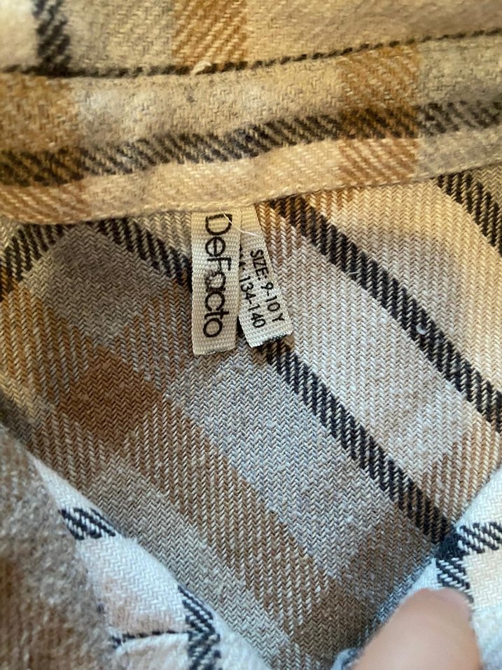 Defacto markalı, bej ekoseli, yumuşak kumaşlı erkek badge. Rahat ve bohem tarzda, beden 34-140.