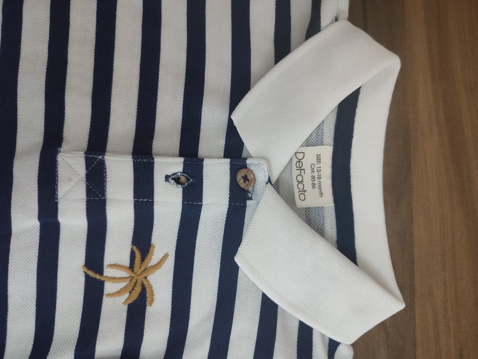 DeFacto erkek çocuk için yakalı, cırt cırtlı, kısa kollu, pamuklu, lacivert 12/18ay 86 cm kullanilmadı.ihtiyac fazlası