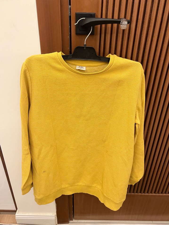 Sarı keten kumaştan, yuvarlak yaka ve uzun kollu, oversize kesime sahip kazak. Parlak rengi ve sade tasarımıyla günlük kombinlere şıklık katar.